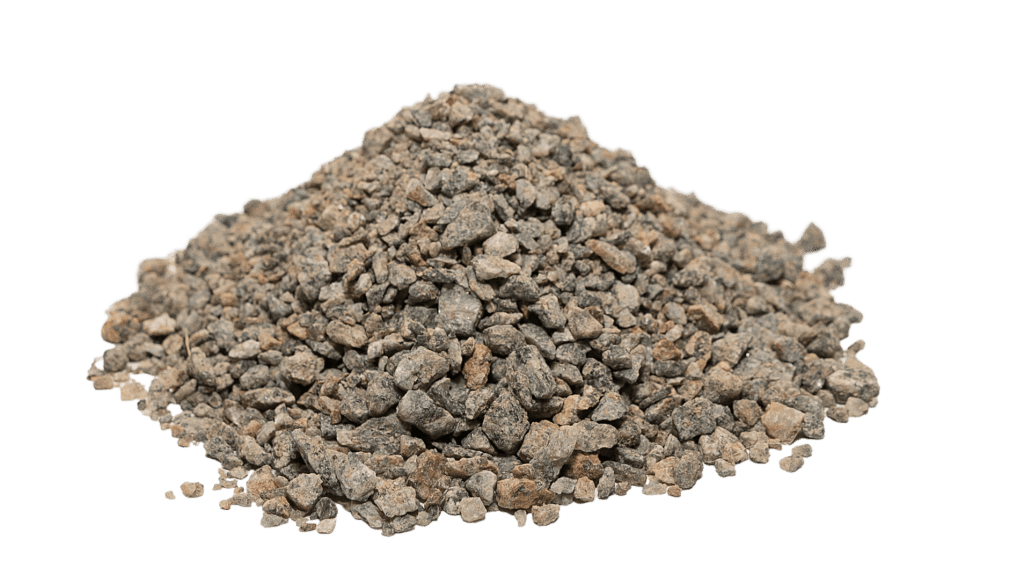 Knust stein som gir stabilt fundament for heller, asfalt og belegningsstein gårdsrom og på veier